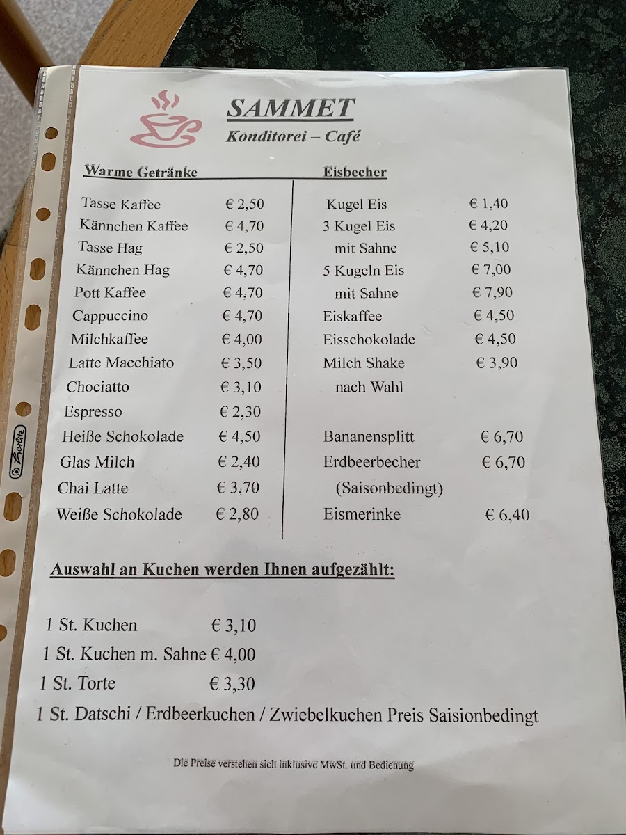 Konditorei Sammet Menu